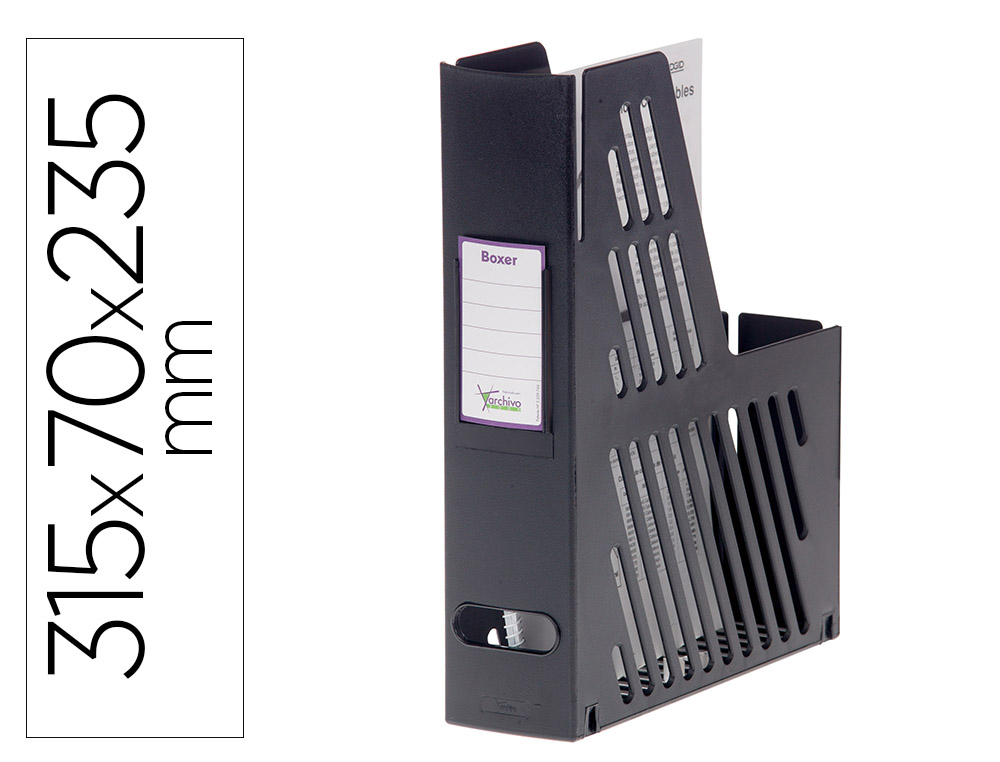 Esta caixa de arquivo é uma solução eficiente e sustentável para organizar documentos A4 e fólio. Feita de poliestireno 100% reciclado e reciclável, alia a durabilidade ao respeito pelo ambiente. O seu design compacto e estável facilita a manutenção de revistas, pastas e outros materiais impressos sempre acessíveis e organizados.